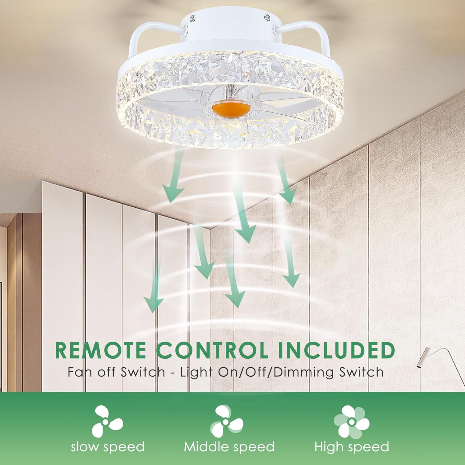 13 Inch Modern Ceilng Fan with Light for Small Room