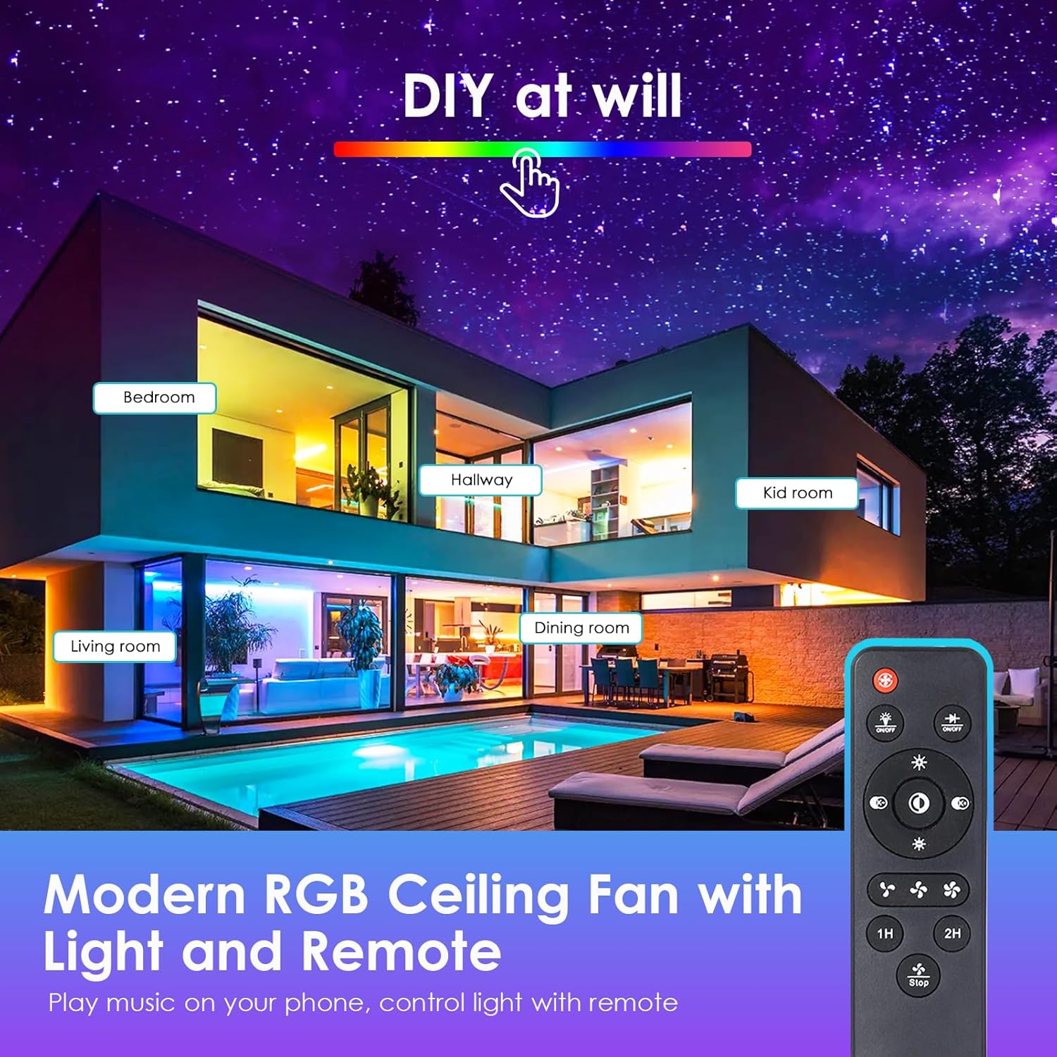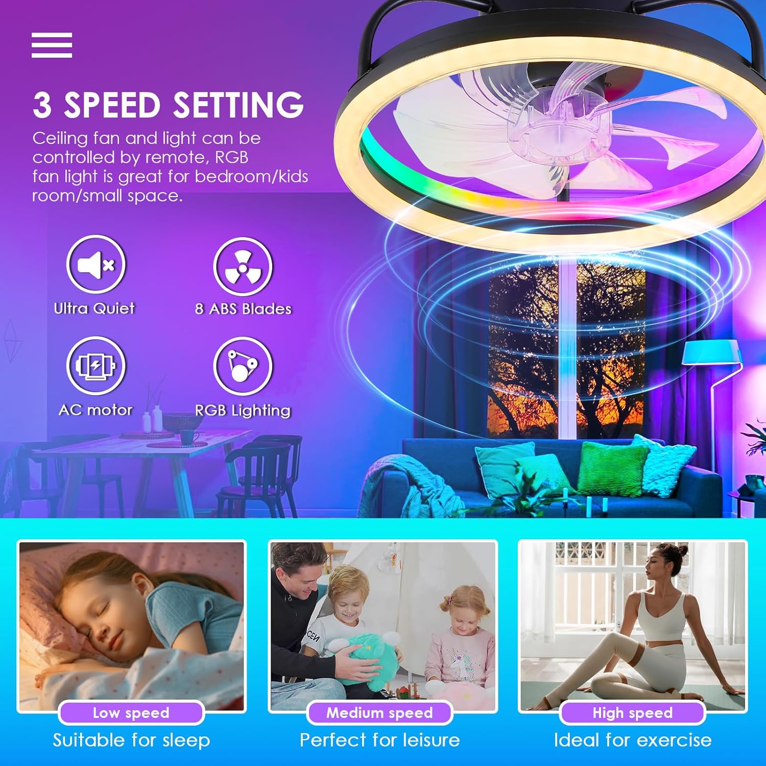 16 Inch Flush Mount modern Fan light for Bathroom,Closet