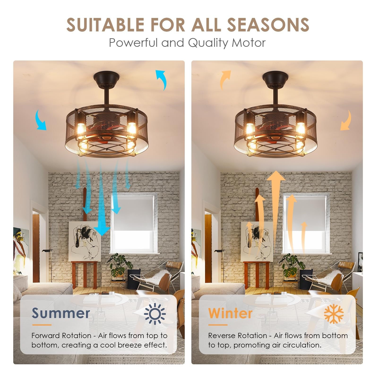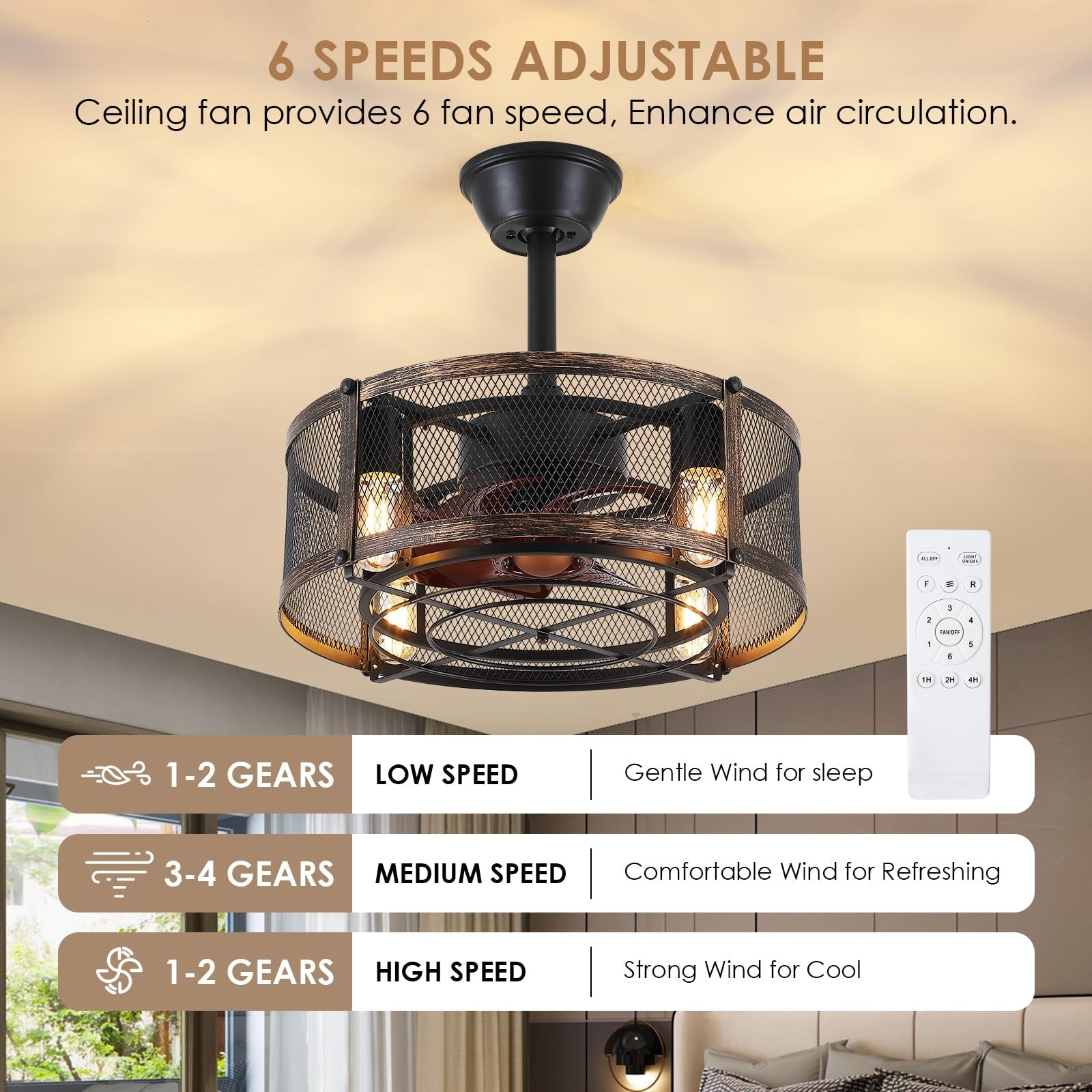 18 Inch Caged Ceiling Fan with Light,Reversible DC Motor,Remote Control for Timer Setting,6 Speed Wind,for Bedroom,Kitchen,Outdoors