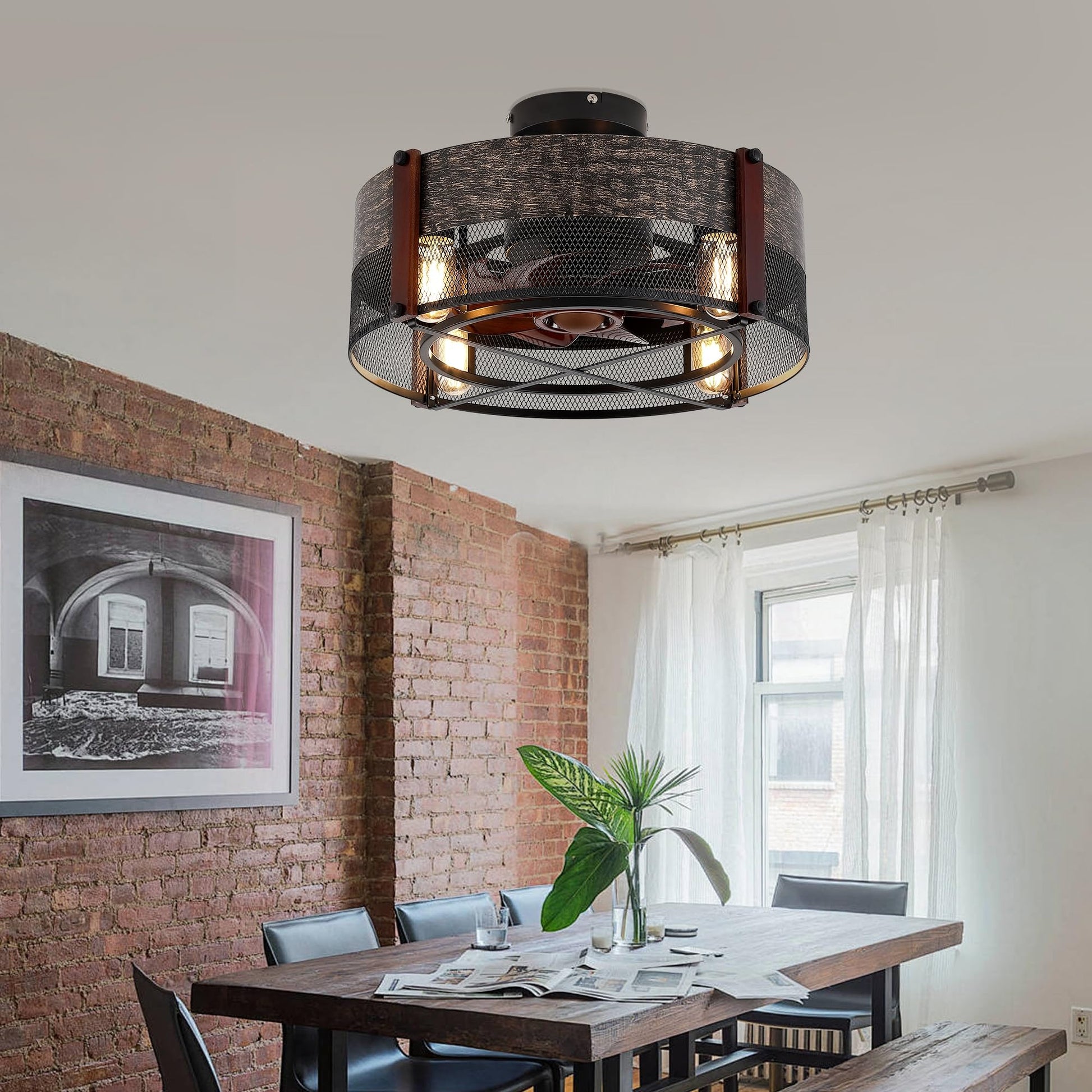 BayDay 19" Farmhouse Fandelier Caged Ceiling Fan with Light, Modern Small Enclosed Ceiling Fans with Lights for Living Room, Bedroom, Black