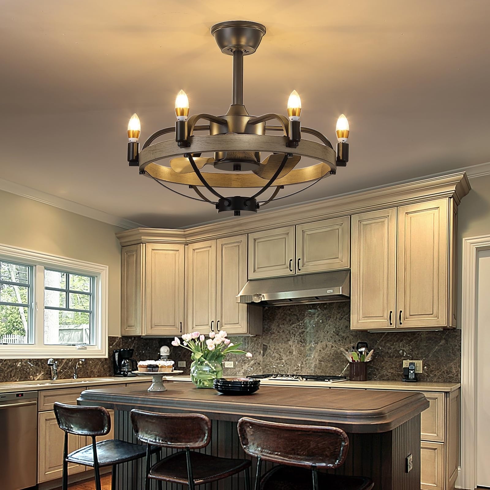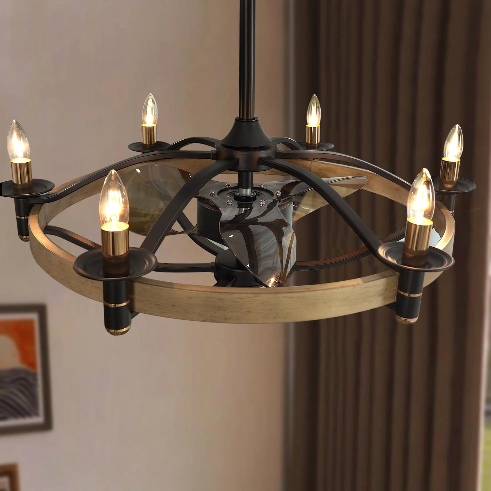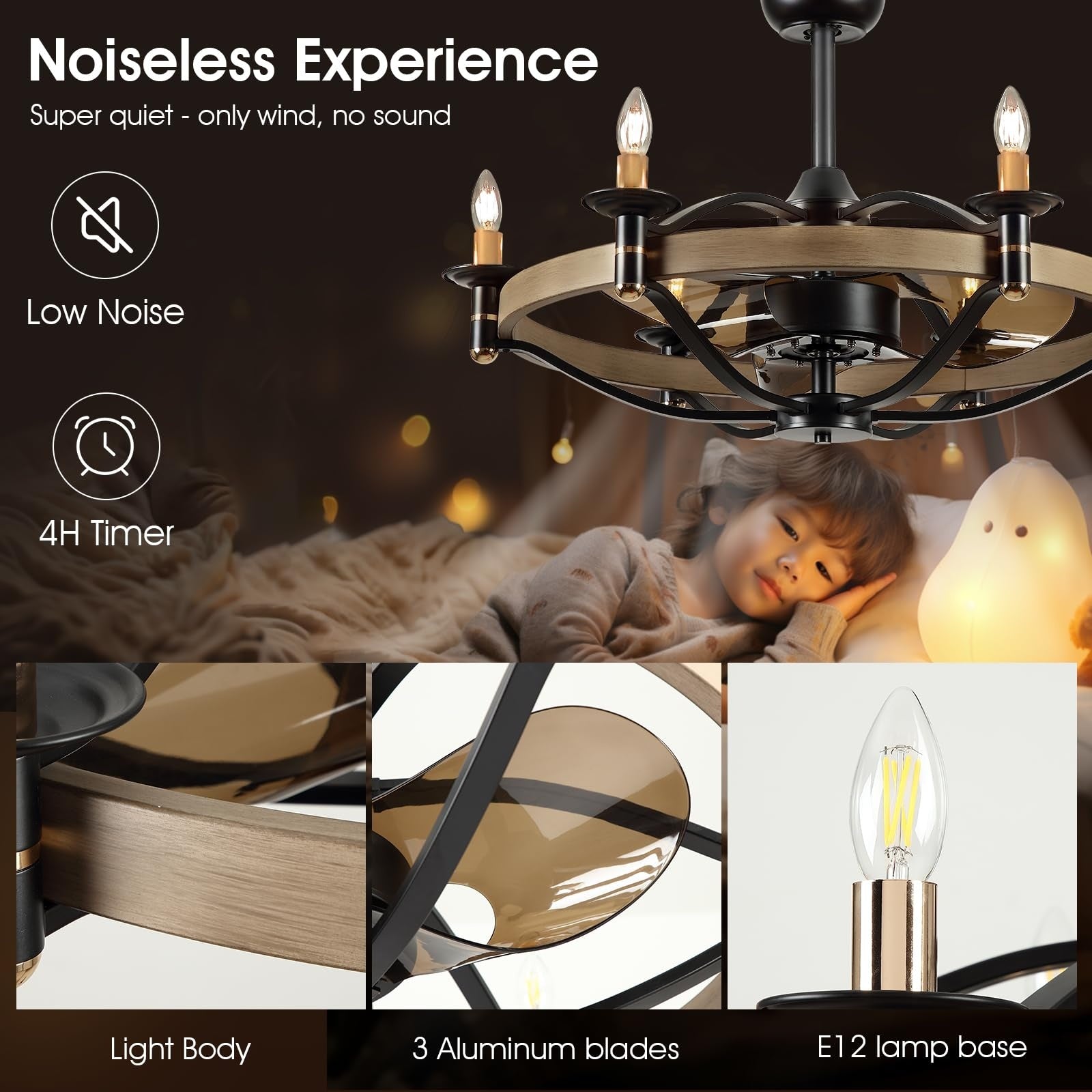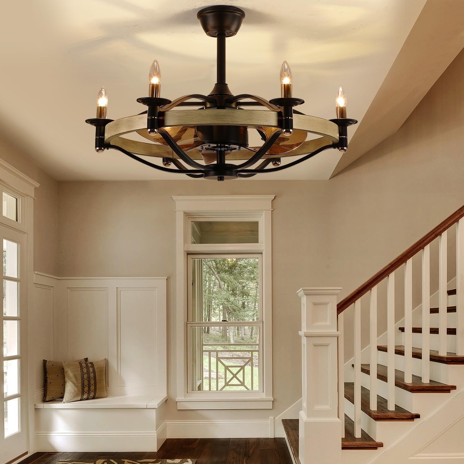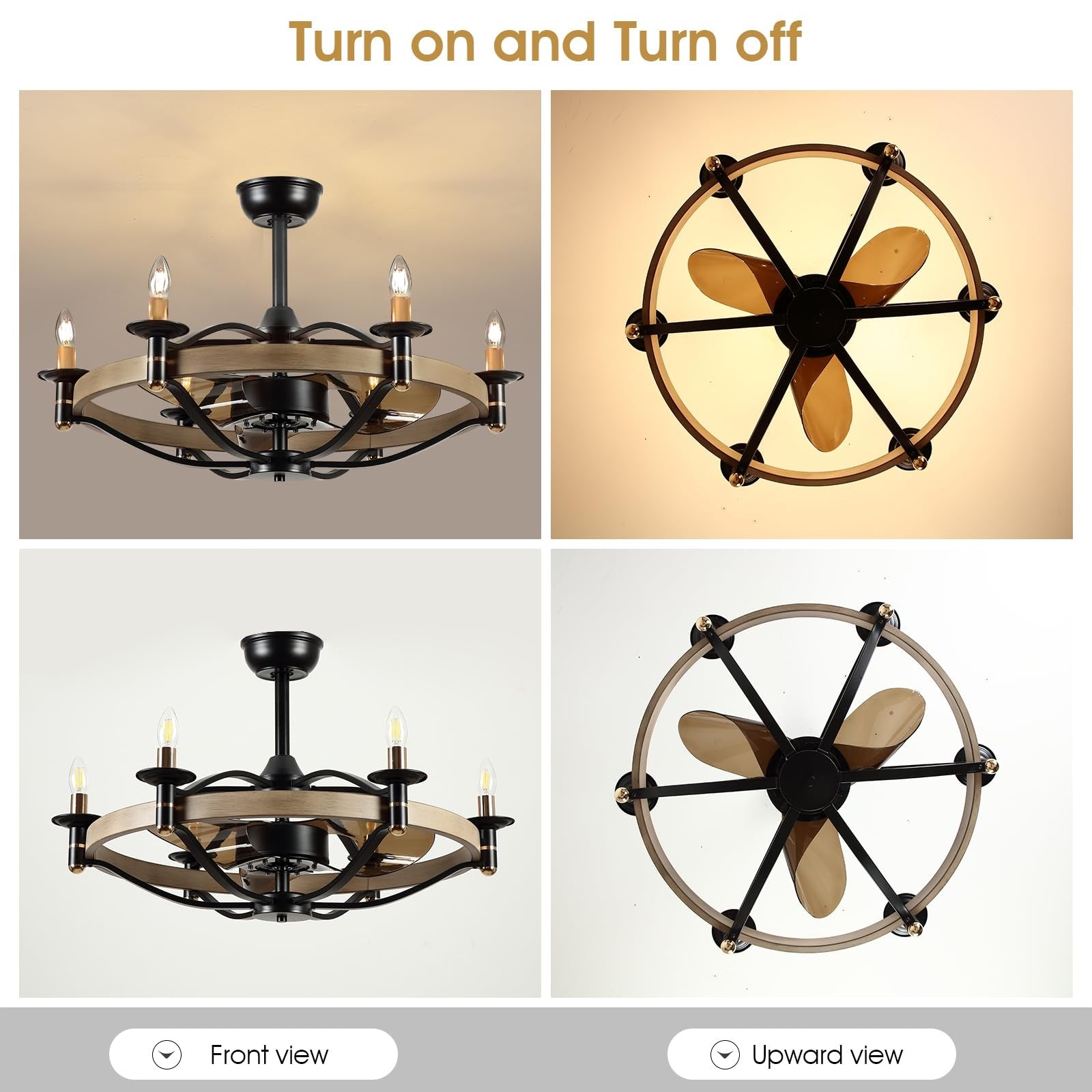 23/32 Inches Caged Ceiling Fan with Light and Remote,Modern Farmhouse Ceiling Fan Light for Living Room,Kitchen,Dinning Room, Black Rustic Chandelier Candles