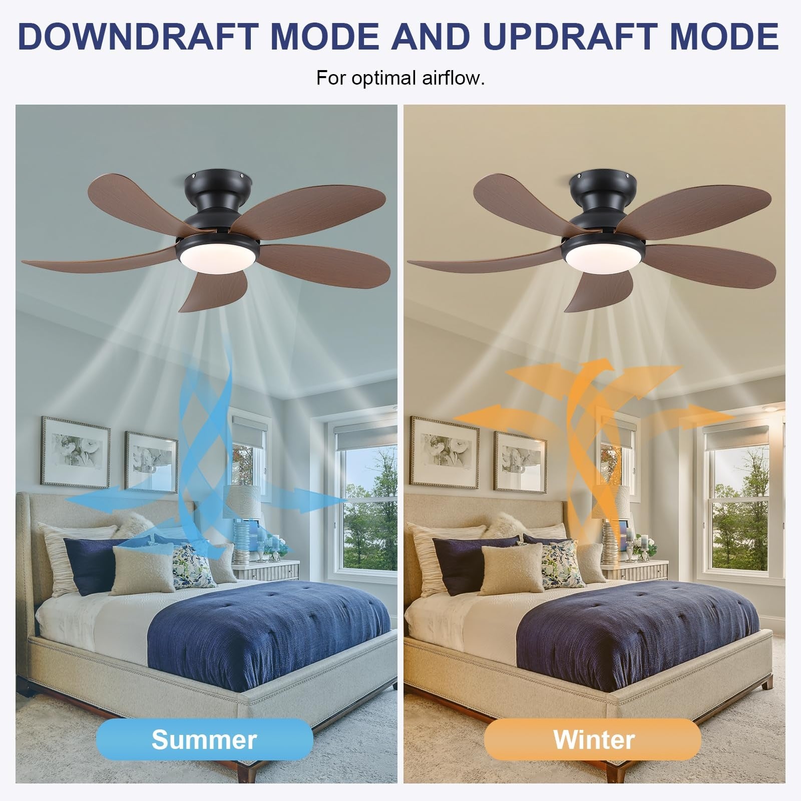 42 Inch Low Profile Ceiling Fan with Brown Blades