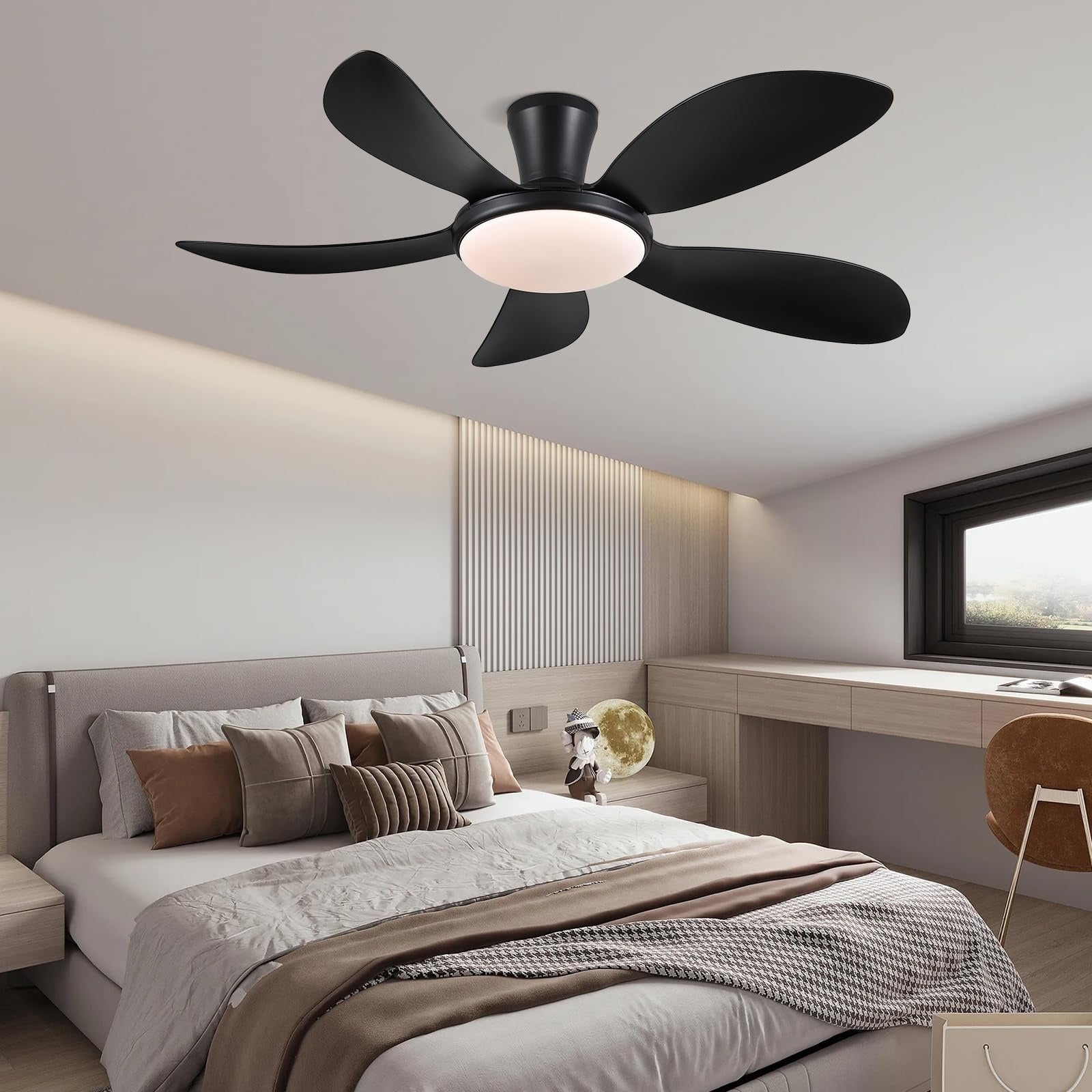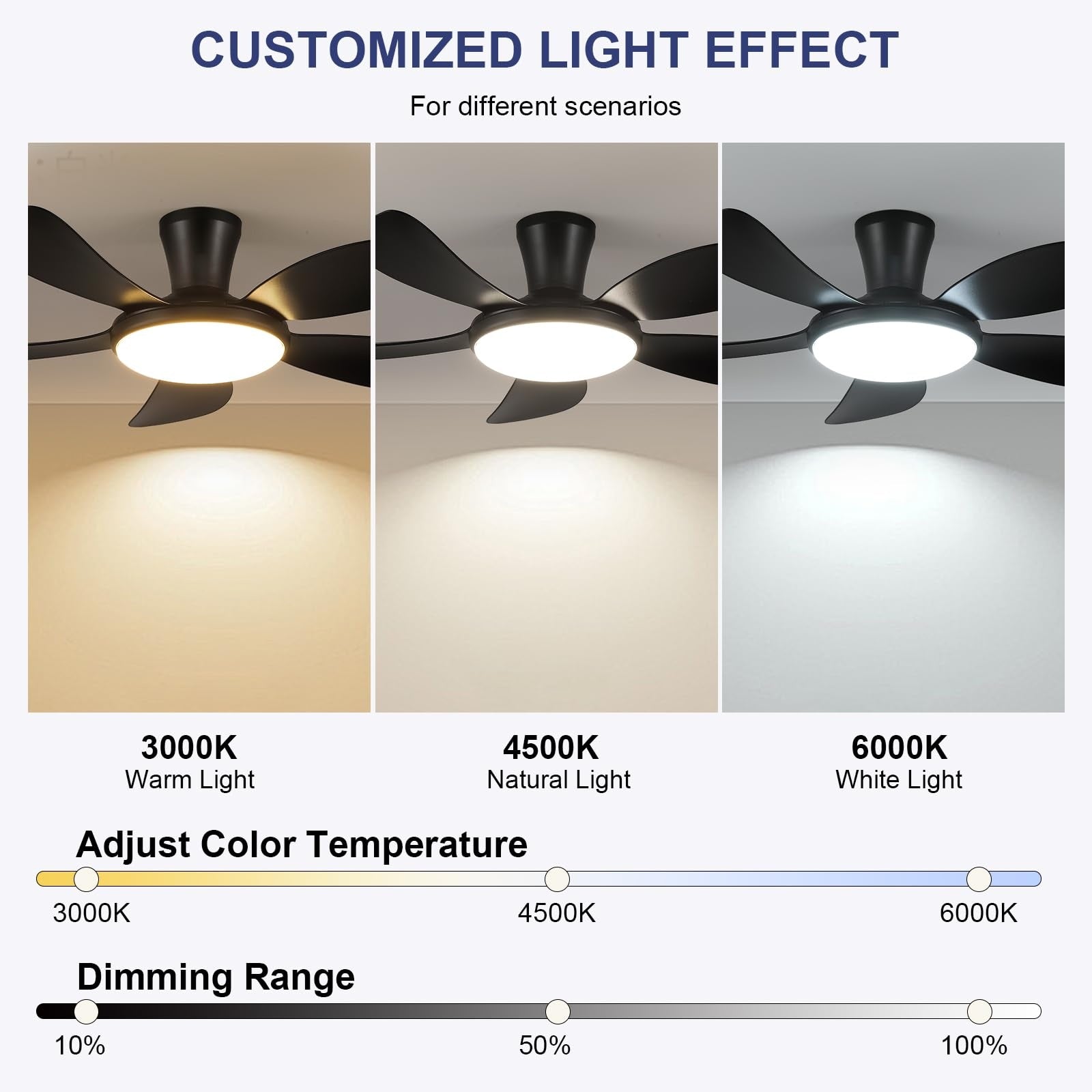 This 30W high-efficiency DC motor ceiling fan delivers powerful, near-silent airflow (under 35dB), perfect for sleeping, reading, or working. The 28W LED light features an extra-large lampshade for wider, brighter illumination, with flicker-free, eye-friendly lighting in three color temps (white, warm, neutral) and stepless dimming—your preferred settings are saved automatically. The reversible 6-speed motor allows seasonal adjustment: cooling breeze in summer and warm air circulation in winter. Control is seamless via remote or smartphone app, enabling adjustments for fan speed, timing, light settings, and rotation direction. Installation is quick and easy, with an English manual and online video guide included. Built for durability and safety, it comes with a 1-year warranty and free replacements for defects. Whether for bedrooms, offices, or living spaces, this energy-efficient, smart ceiling fan combines strong airflow, customizable lighting, and quiet operation for year-round comfort.