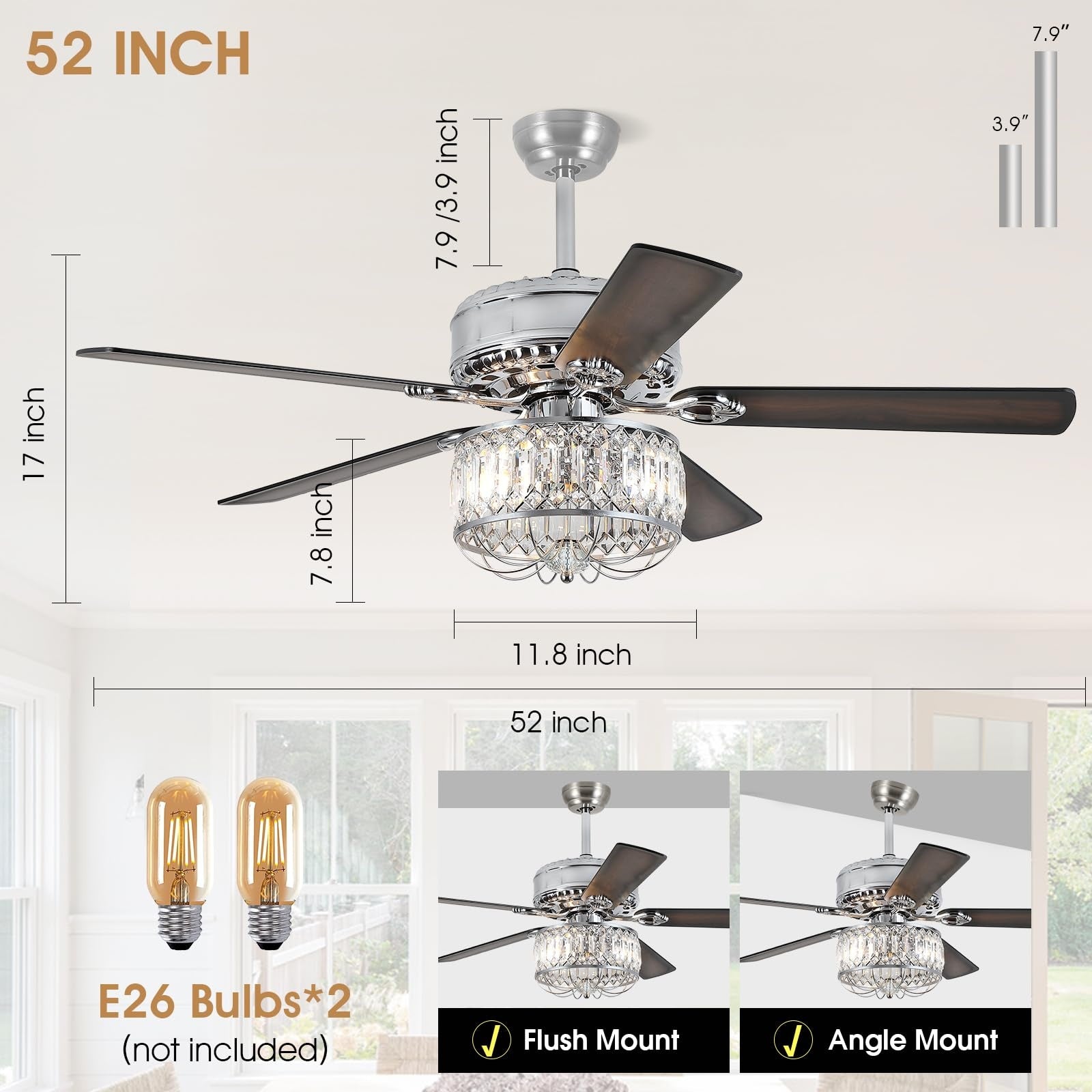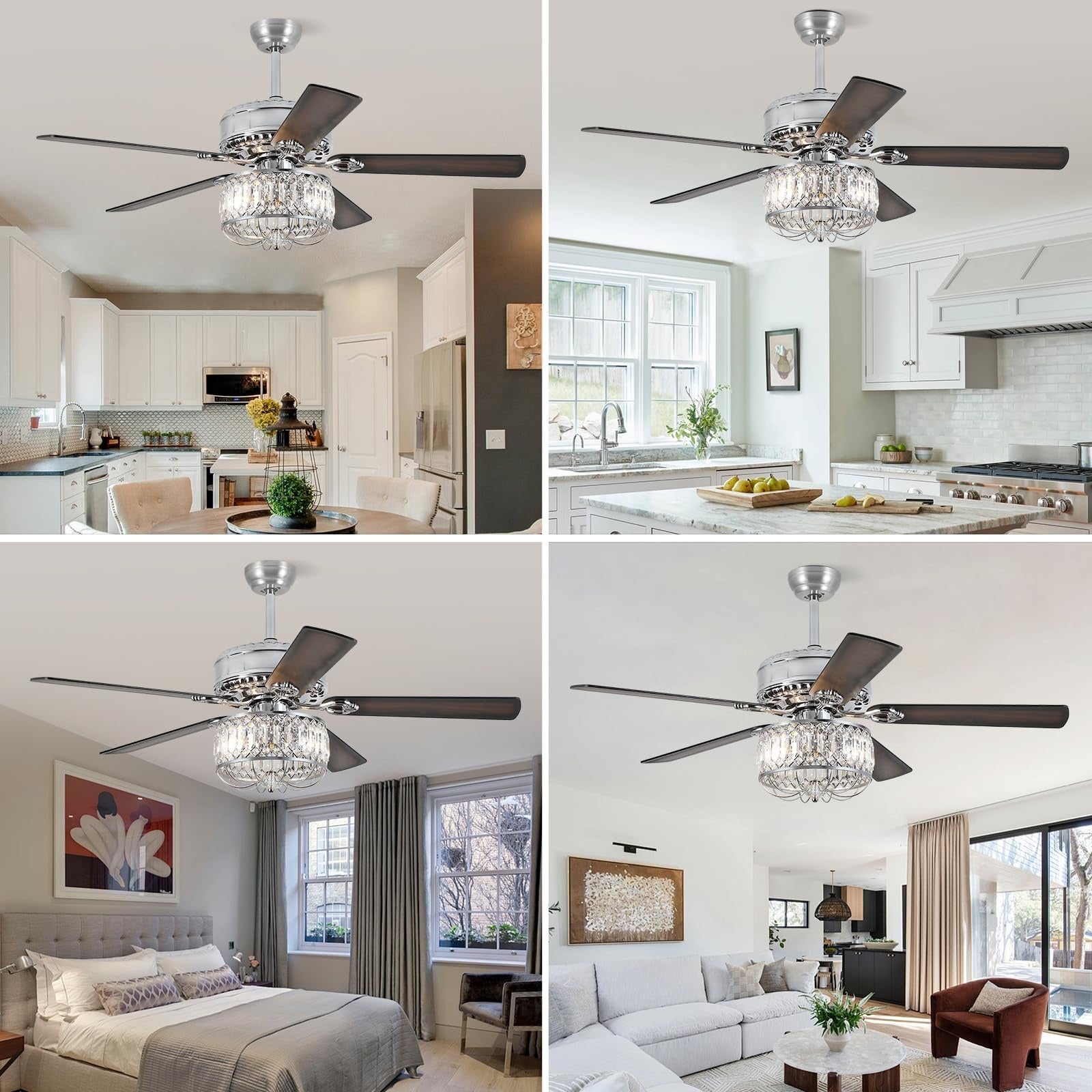 52" Crystal Ceiling Fan with Light,Modern Indoor and Outdoor Ceiling Fan,for Kitchen,Dining Room,Bedroom