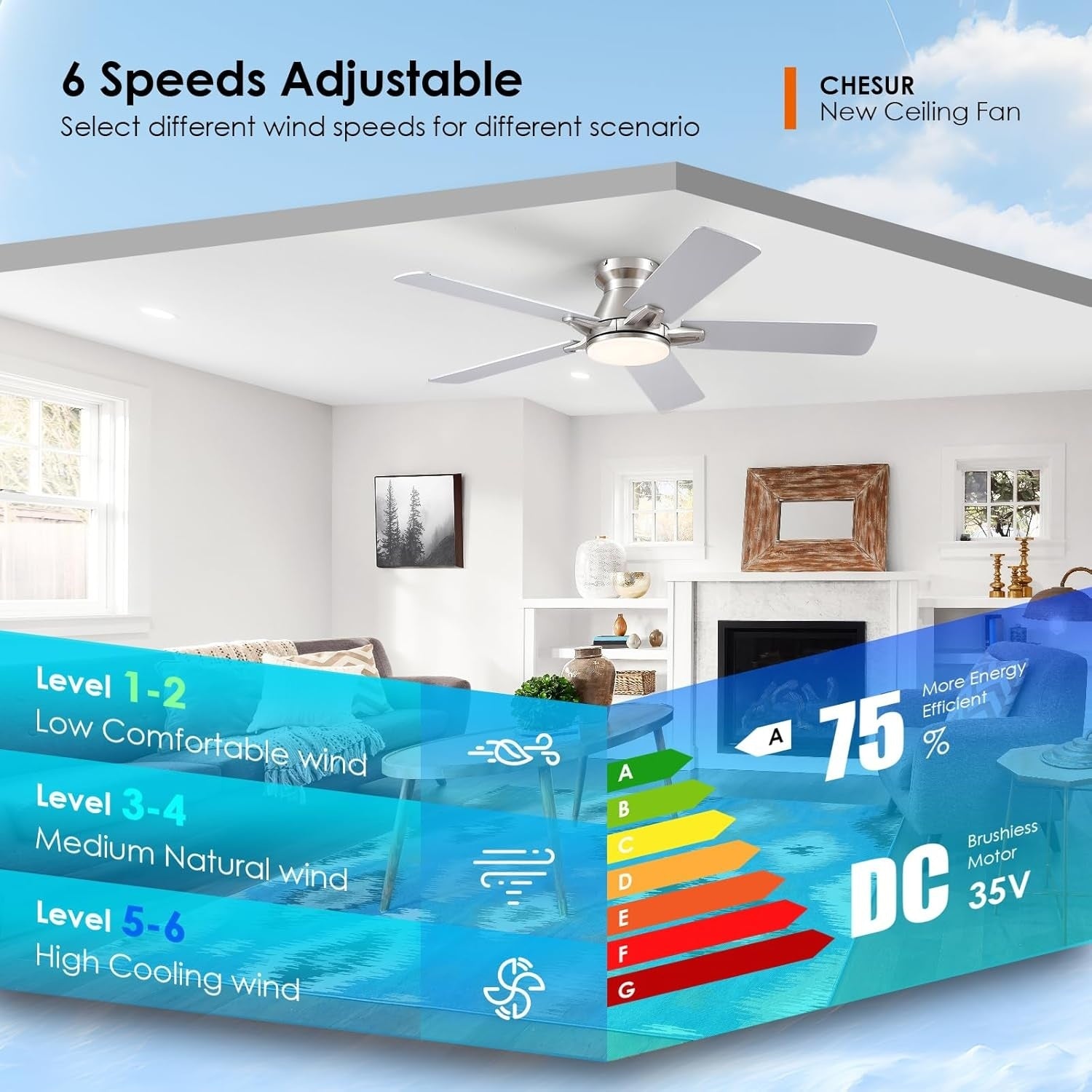 52 Inch Flush Mount Ceiling Fan with Light-NIckle