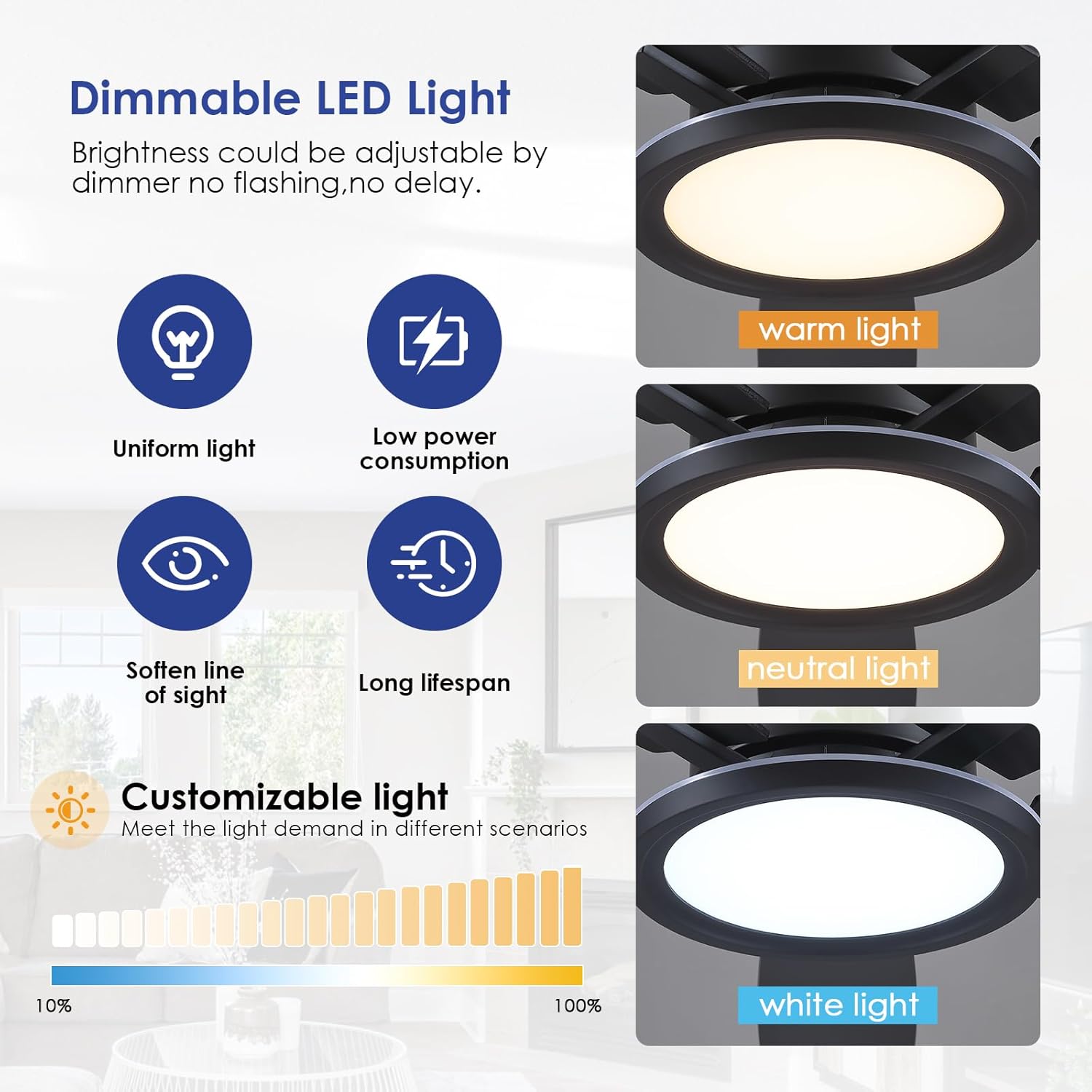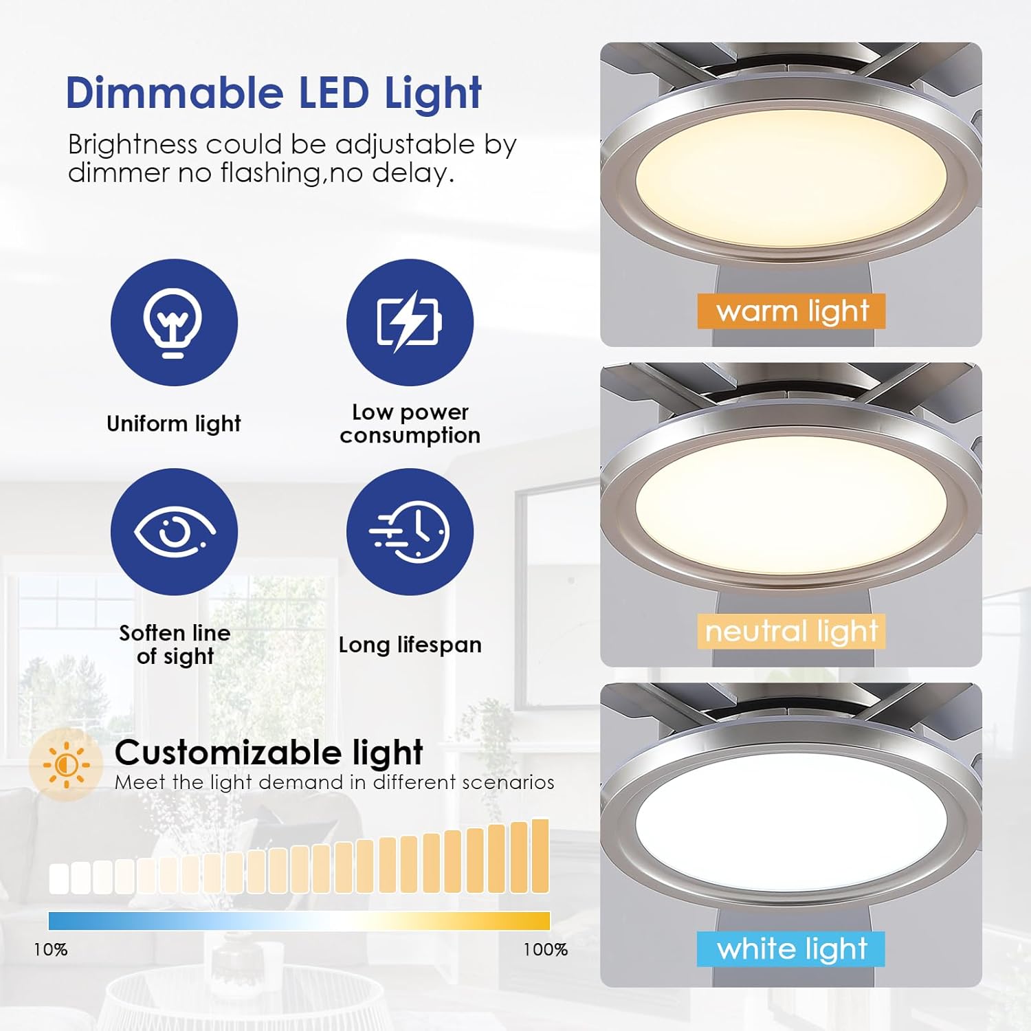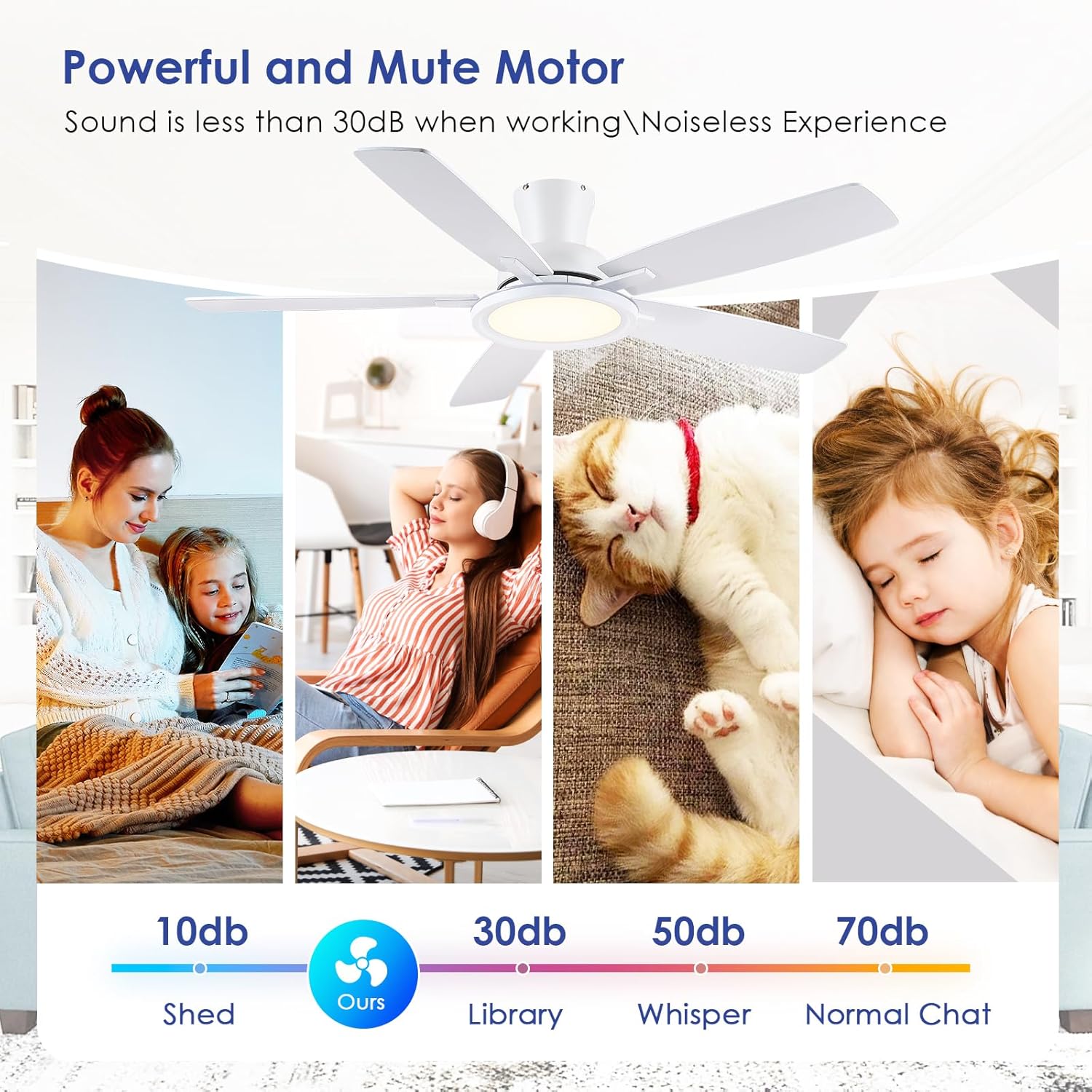 52 Inch Flush Mount Low Profile Ceiling Fan
