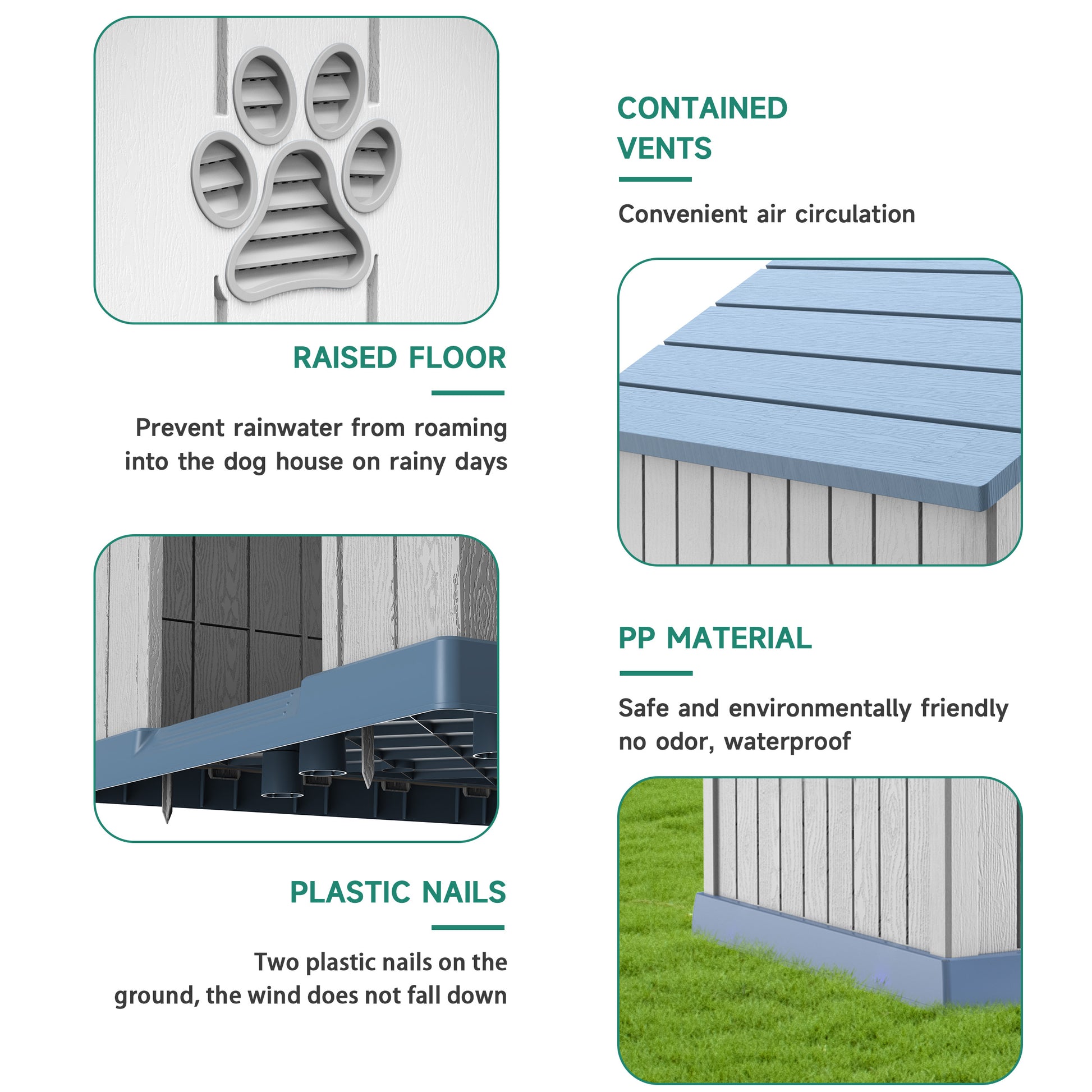2 hidden plastic nails to fix the kennel on the grass