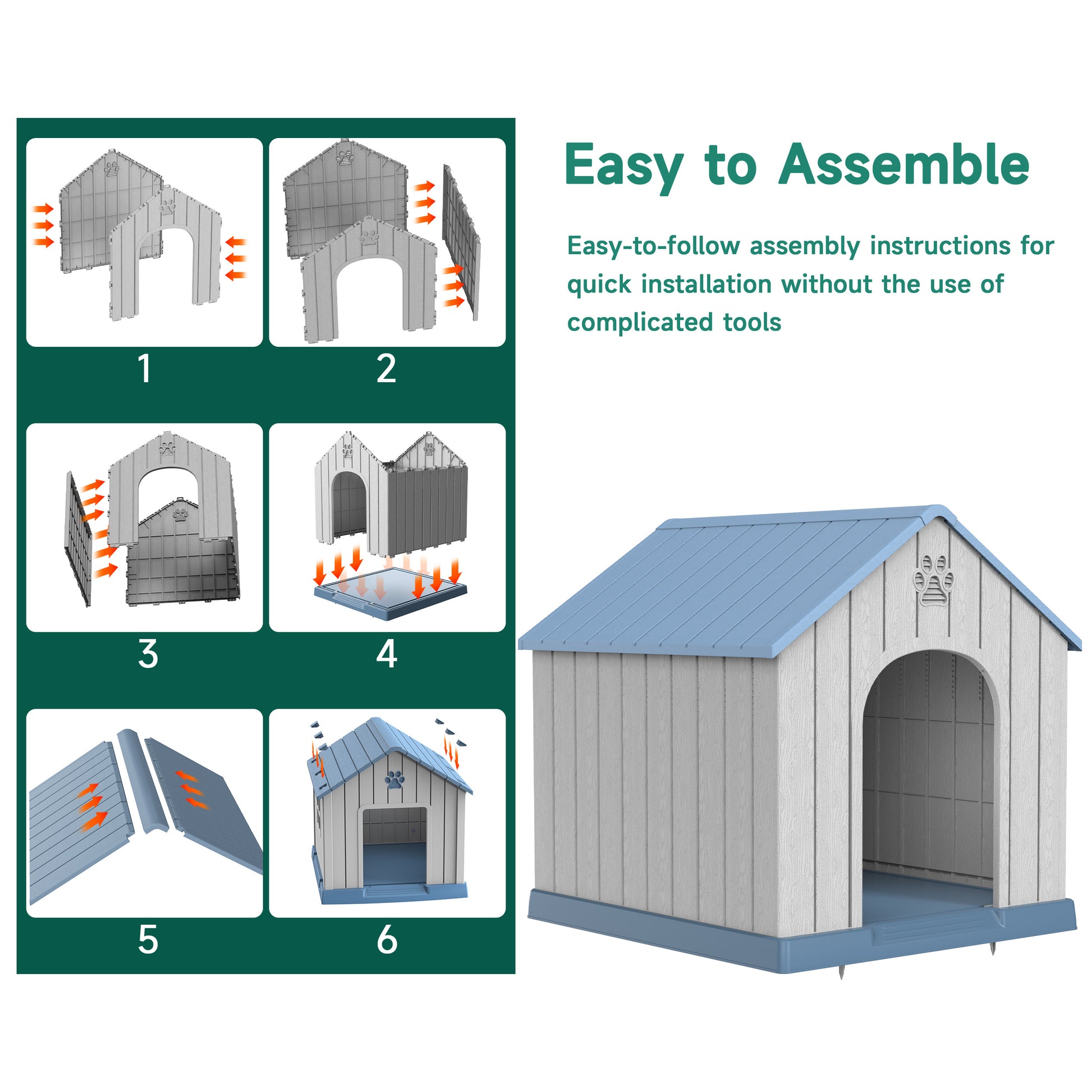 Bellura Pet - 38'' Sturdy PP Construction Water and Mildew Resistant Blue Pointed Doghouse Indoor Outdoor Pet Shelter