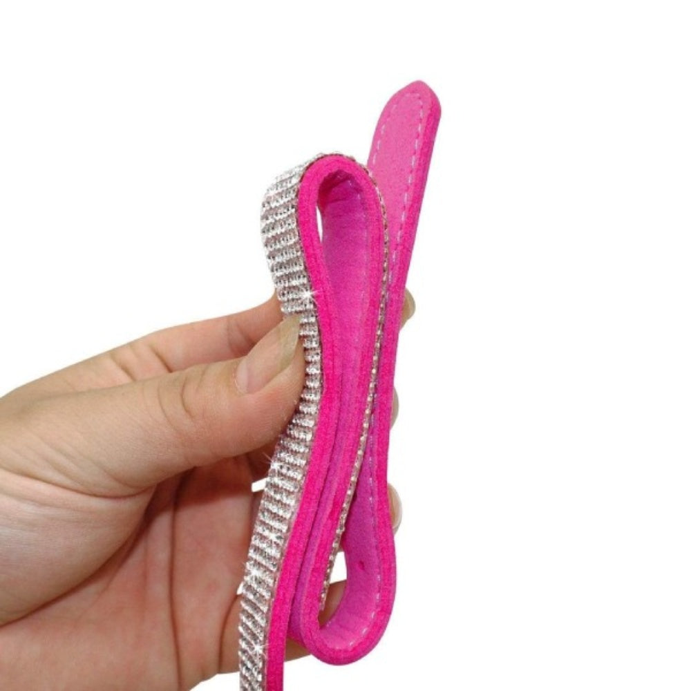 Bellura Pet - Leather Dog Collar with Diamonds - Pink