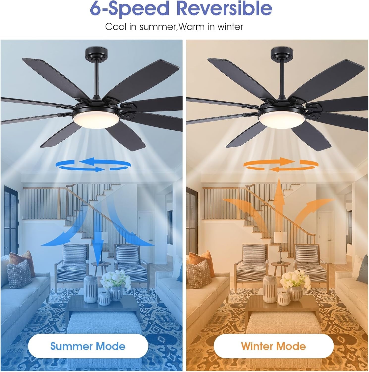 72 Inch Ceiling Fan with Light and Remote ,Modern Ceiling Fan for Living Room,Warehouse