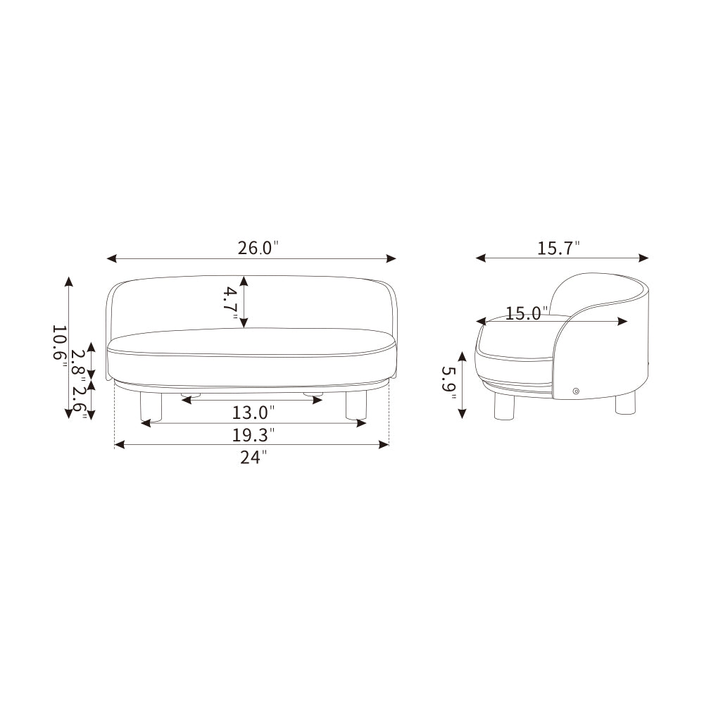 Bellura Pet - Scandinavian Style Velvet Cushion Walnut Elevated Dog Bed Pet Sofa with Bent Wood Back and Solid Wood Legs